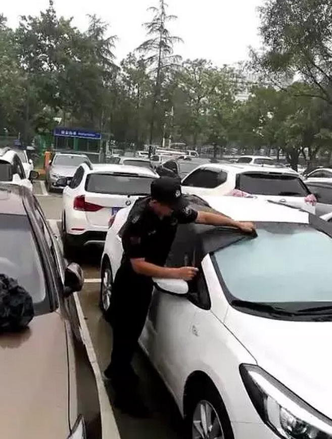 “用袋子遮住車窗以免雨水滲透進去,保障了大家的財產安全,這樣的保安小哥很讓人感動。”對于甕成的舉動,車主連聲道謝。