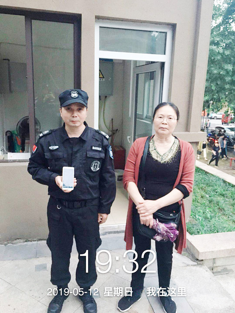 4、2019年5月10日下午4點35分,融恒盈嘉中心的中威戰士廖海全正在二樓卸貨平臺崗位執勤時,拾到一部華為手機,廖海全立即上報隊長朱恩澤并將手機交到二樓崗位處等候失主前來認領。晚上7點30分,失主陳先生著急趕來尋找,經工作人員核實無誤后將手機物歸原主。對中威戰士的熱心幫助,失主陳先生連連表示感謝!