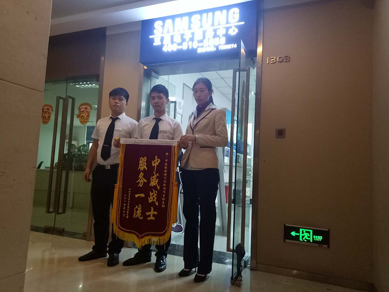“中威戰士 服務一流”,這是融恒時代廣場一名業主對中威戰士的評價。近日,中威保駐融恒時代廣場分隊接到緊急電話,稱有暴力分子在三星手機維修店鬧事,由于事發突然,店員手足無措、十分驚慌。接到電話后,保安班長劉忠穩即刻率領隊員何沛、劉登春等人前往現場。抵達現場時,發現店員和鬧事人員已經打成一團,情況十分危急。于是,中威戰士迅速上前隔離雙方人員,及時制止了暴力沖突。在中威戰士們的勸解下,雙方人員逐漸冷靜下來。原來,該業主經營這家三星手機維修店數余年,一直在附近口碑很好,直到近日一位客戶修好一部三星手機后拿回家發現再次死機,手機又無法繼續正常工作。客人覺得手機維修費非常高,但手機并未修好,便要求該店退款賠償。但該店認為手機是修好返還的,再次壞掉不是他們的問題,于是雙方就此發生了口角之爭。雙方在爭吵過程中越演越烈,客戶找來幾個幫手準備對店家拳腳相向。好在中威戰士在三分鐘內及時趕到阻止了事態升級。同時,在戰士們耐心的勸解下,雙方達成和解,此事得以圓滿解決。中威戰士及時處置,全心全意服務的行為,店主特意為中威戰士做了一面錦旗表示感謝。