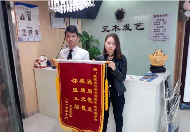 2017年10月13日,融恒廣場內一家理發店因店員用電處置不當,導致店內插線板短路燒壞。由于店內易燃物品較多,火源迅速燃燒并產生大量濃煙。與此同時,正在總控室值班的中威戰士也接到報警通知,隊長甄洪明立即帶領劉忠穩、張鵬舉火速前往理發店進行救火。