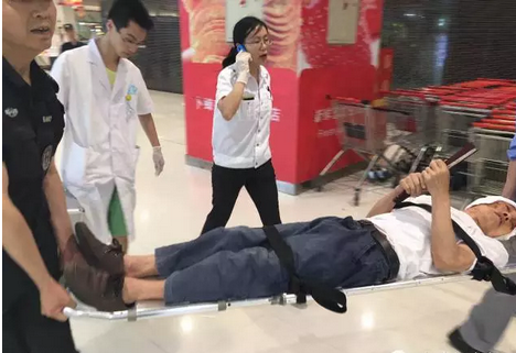 6月13日下午4點06分,日月光護衛點代班長馬軍正在進行例行查崗。行至B1中庭時,馬軍發現,不遠處人群攢動,場面混亂。馬軍快步上前查看,只見一名老人摔倒在地,左右眉骨及后腦皆有不同程度傷口,地上血跡斑斑,四周有群眾圍觀。